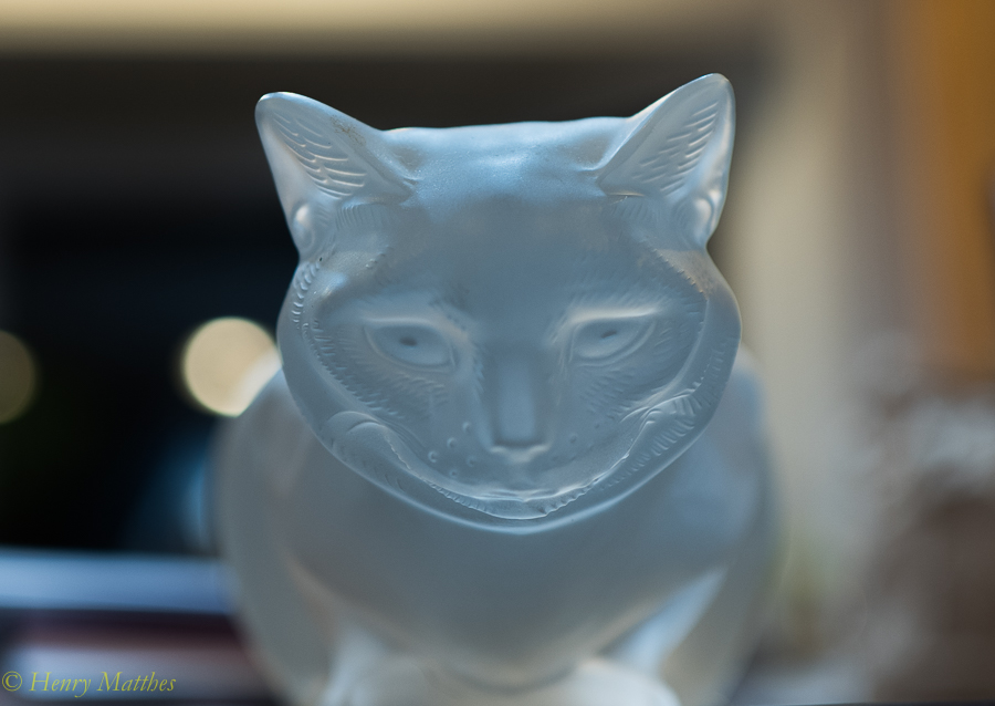 Center portion of close up portrait of Lalique Crystal Cat done 5/13/16 with Leica Q using f1.7, 1/60th, ISO 100 without using macro focus. Cropped in Lightroom, saved as JPEG for websites. Handheld with ambient light. My first close-up with borrowed Q.
