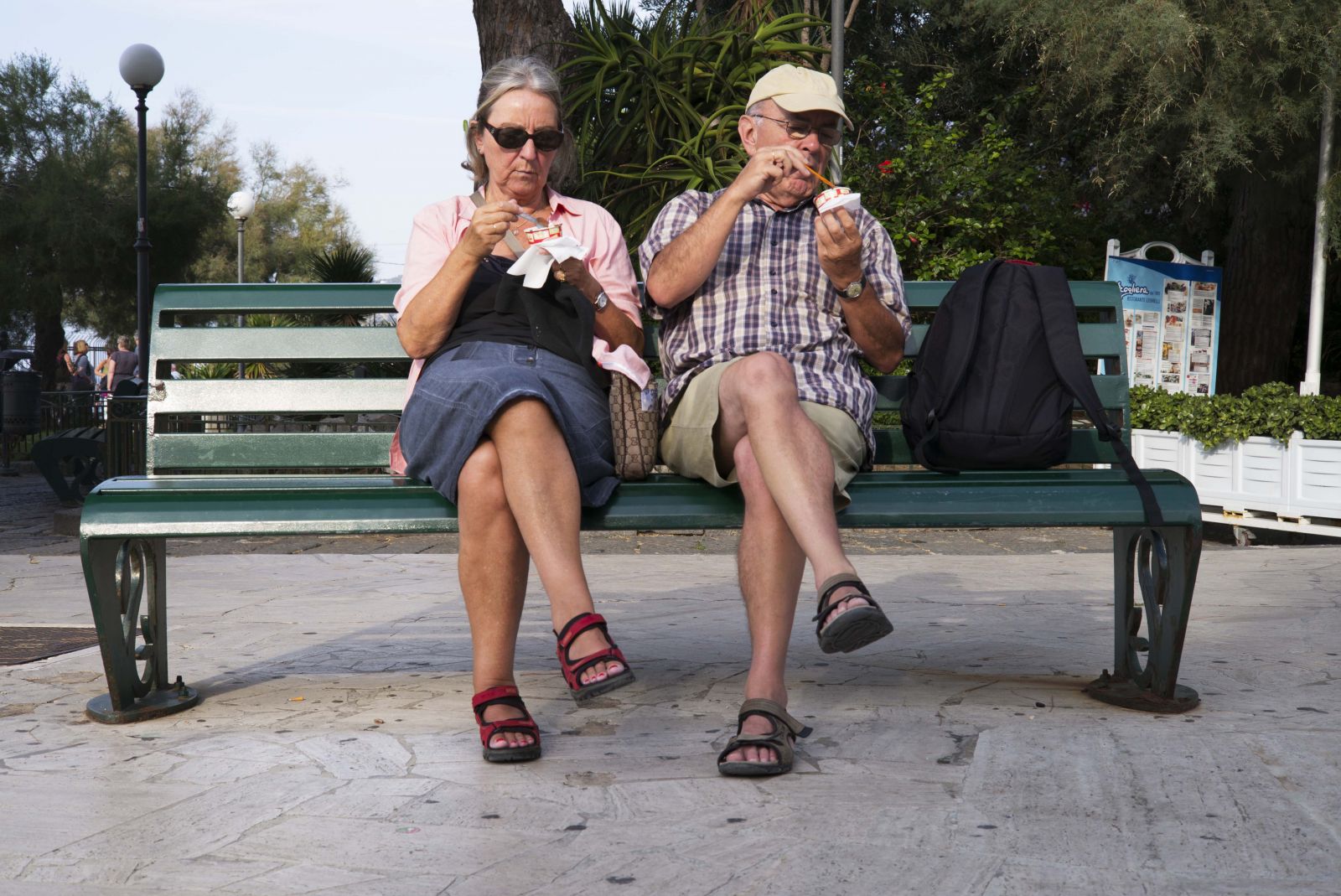 Tourist couple eating ice cream