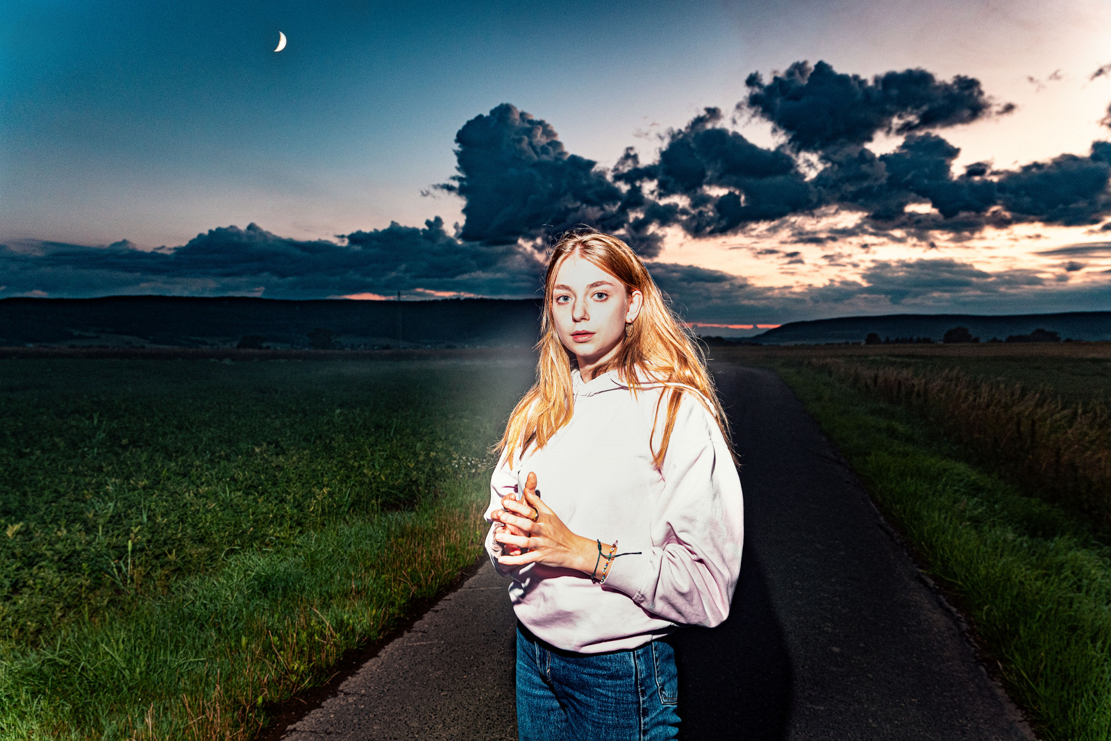 Last moments of the sunset are my favorite time. It was a very rare event having the moon in the shoot. the fog came out of the smoke machine "scottyII"