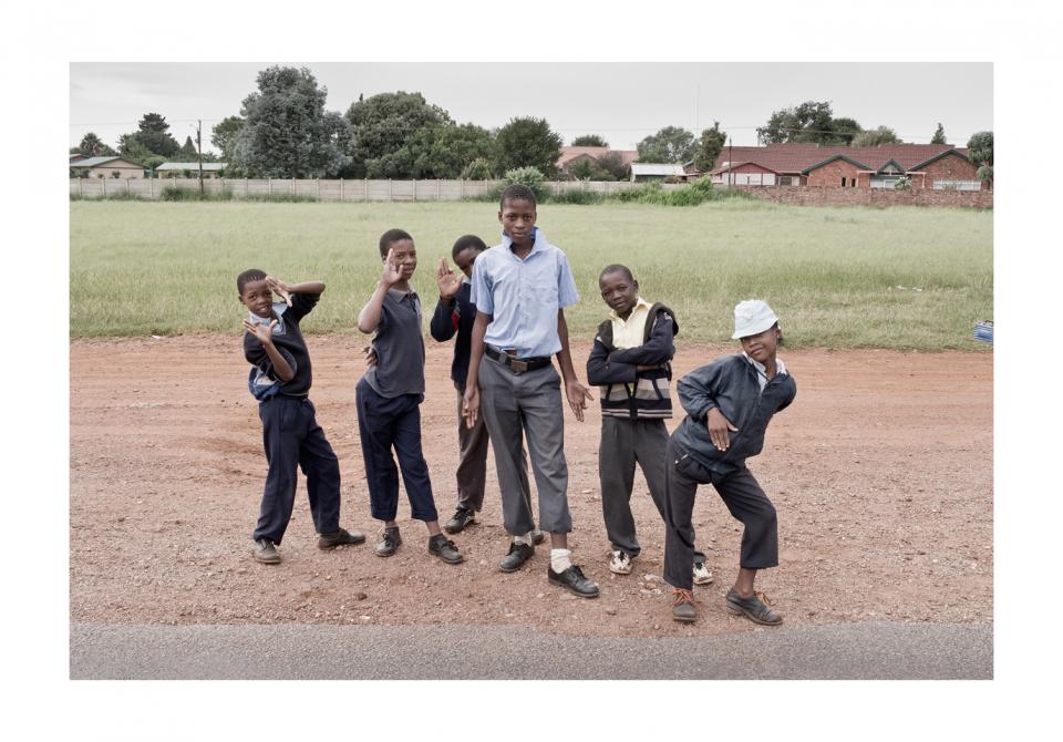 Five young boys waiting for the school bus... Carltonville February 2011
