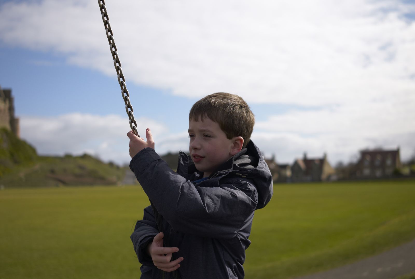 S On tyre swing In front Of Bamburgh Castle (M8 Summarit 35mm f2.5)