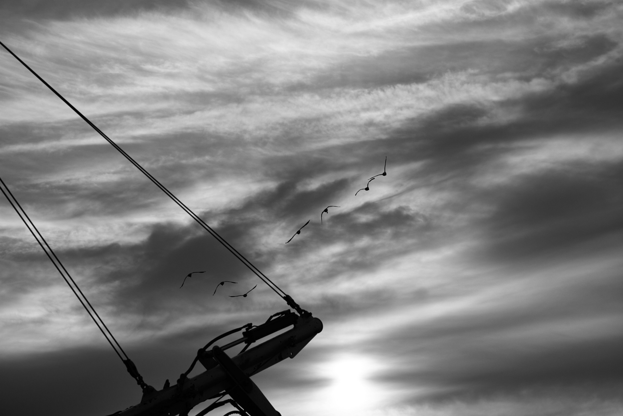 Cable car silhouettes across the Victoria Docks, London Summaron 35/2.8 + NEX62 points