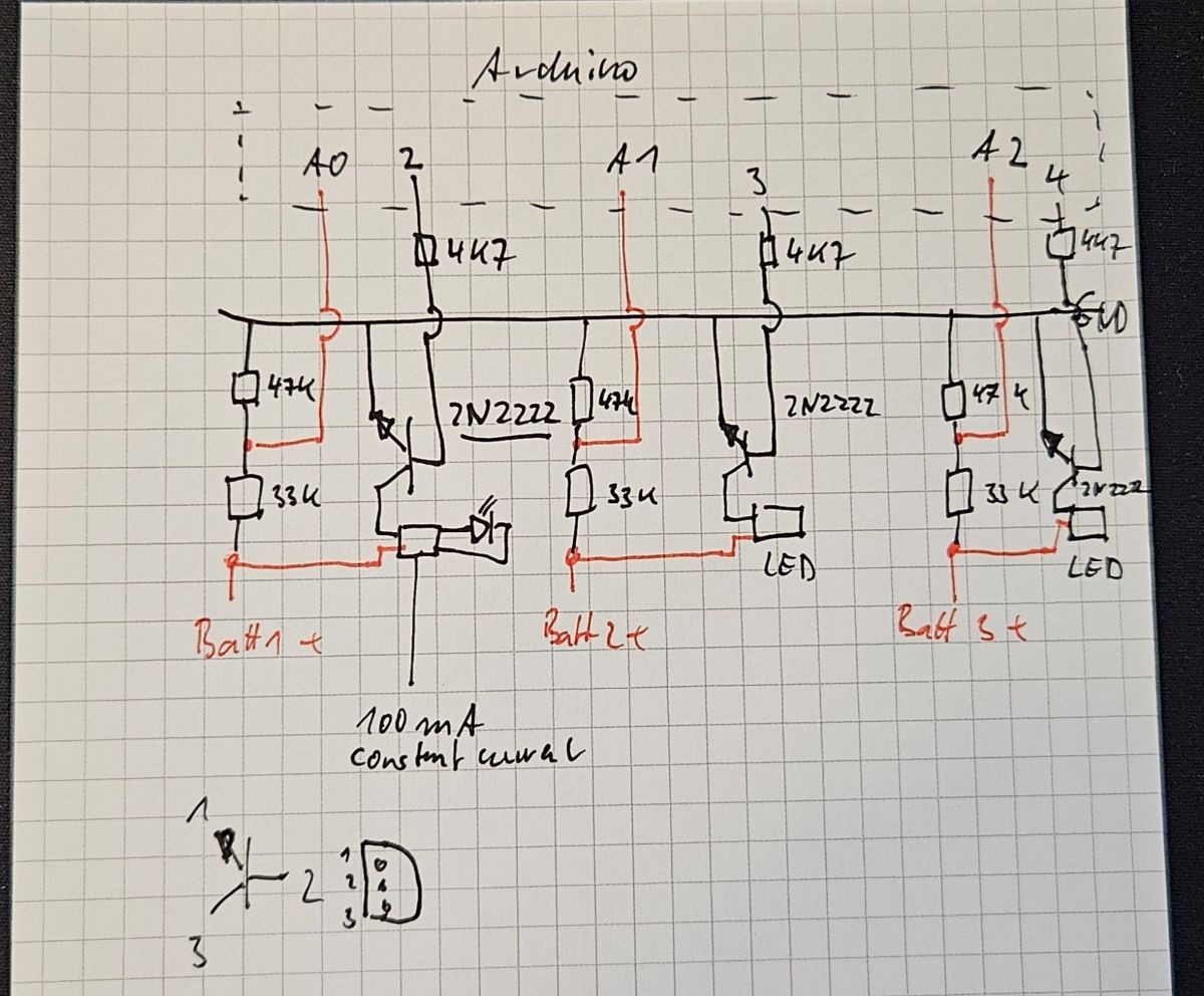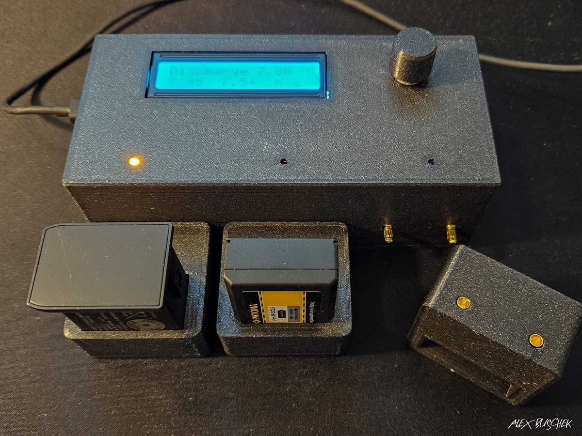 I thought about it a bit more. My typical use case is: I mainly use my cameras on vacation. I have a 50h/w job and barely find time to do photography on weekends, let alone during the week. That means sometimes my batteries sit fully charged for weeks. This may work but common knowledge is that this is far from ideal. Storing batteries with 80% is much better. When I come home from vacation most of my M10, M11 and DL8 batteries are fully charged. As I love tinkering I came up with the idea to build a discharging station. It was supposed to be a rather simple Arduino sketch but I ended up with >300 lines of code that deals with everything including the ability to adjust the discharge voltage between 8V and 7.4V. This is the approach (for those who are as "Monk-ish" / nerdy as I am): Discharge the battery with a rather moderate load that can be easily accomplished. I opted for a 0,5W Power LED that is fed by a 100mA constant current circuit when discharging. Every minute of discharging the LED will be switched off and after 2s the no-load voltage of the battery is measured. If the measured battery voltage is lower or equal the entered discharge voltage, the discharging process is stopped. There are three independent channels. I printed battery bays for the M10, M11 and D-Lux 8 batteries. As this is exchangeable I could also print a second M10 bay so I can discharge two M10 batteries at the same time. Measuring the voltage with an Arduino is relatively simple. With two resistors a voltage divider is built that brings the max. 8.4V down to 5V which is the max voltage an Arduino can deal with in the analog input pin. I checked my calculated voltage with my rather expensive Fluke multimeter and it works surprisingly well. Switching the LED on and off is simply done with a 2N2222 transistor. Why the 2N2222? Because I have a box with 200 of them lying around. This is my (very crude) diagram: And this is how my little device looks like: To change the discharge voltage threshold you just push the knob. Then the voltage in line 1 starts blinking and by turning the knob it can be adjusted in 0.05V steps up and down. Discharging with 100mA only obviously takes a while. The M11 battery has 1800mAh. Draining from full down to 80% (360mAh) will take roughly three and a half hour which is reasonable. Conclusion: Was it necessary to design and build such a device? Of course not! Was it fun, challenging, and pleasing writing the code, designing the parts in Fusion 360 and eventually build everything? Absolutely! It is so rewarding watching the device doing what I wanted it to do. Nerdy greetings Alexander1 point