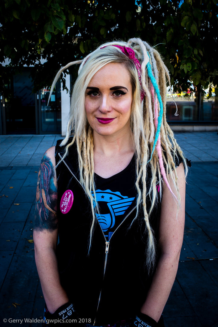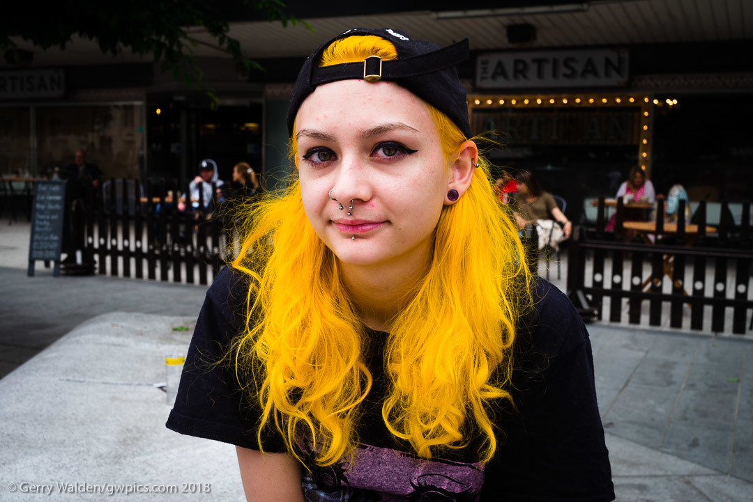 I spotted Gemma at a promotional event as part of the 'Music in the City' initiative in my home town of Southampton, England. I just loved the way she was 'out there' making her own fashion statement. She kindly let me make this image. Leica M240 + 35mm Summarit f2.5. 1/45 at f11 @ 320 iso handheld. Gerry