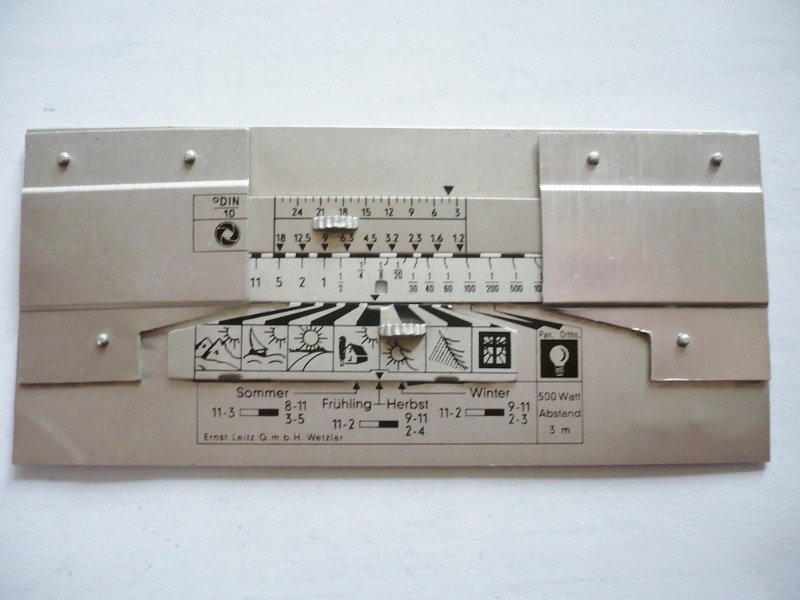 Zu meiner ersten Kamera, einer Voigtländer Vitoret (vor 56 Jahren), bekam ich von meinem Onkel diesen Belichtungsschieber. Erst heute wurde mir bewußt, dass er von Ernst Leitz GmbH ist. Sieht mir aber etwas "ungehobelt" aus. Kennt jemand diesen oder ähnliche? Bitte Bildqualität entschuldigen!