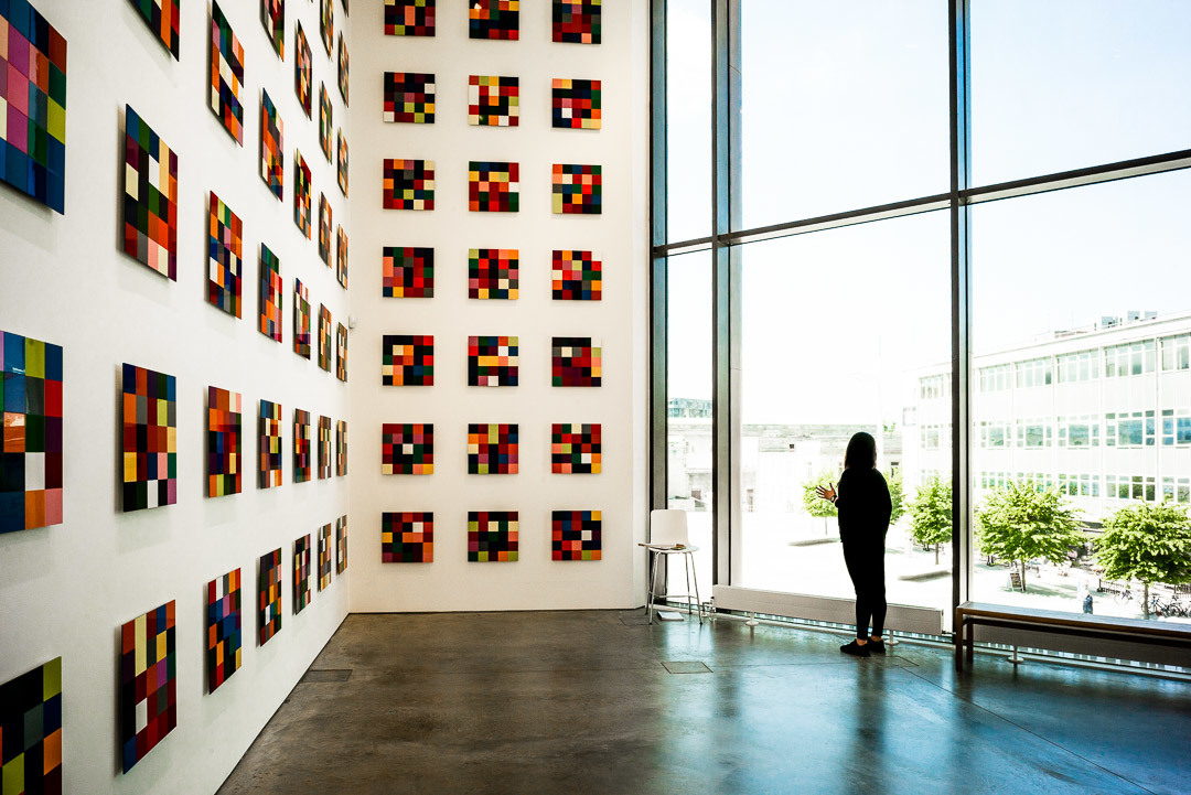 German artist Gerhard Richters' work '4900 Farben' on display in the John Hansard Gallery at Studio 144 in Southampton, England. In total the work consists of 196 panels, a part of which is shown here.