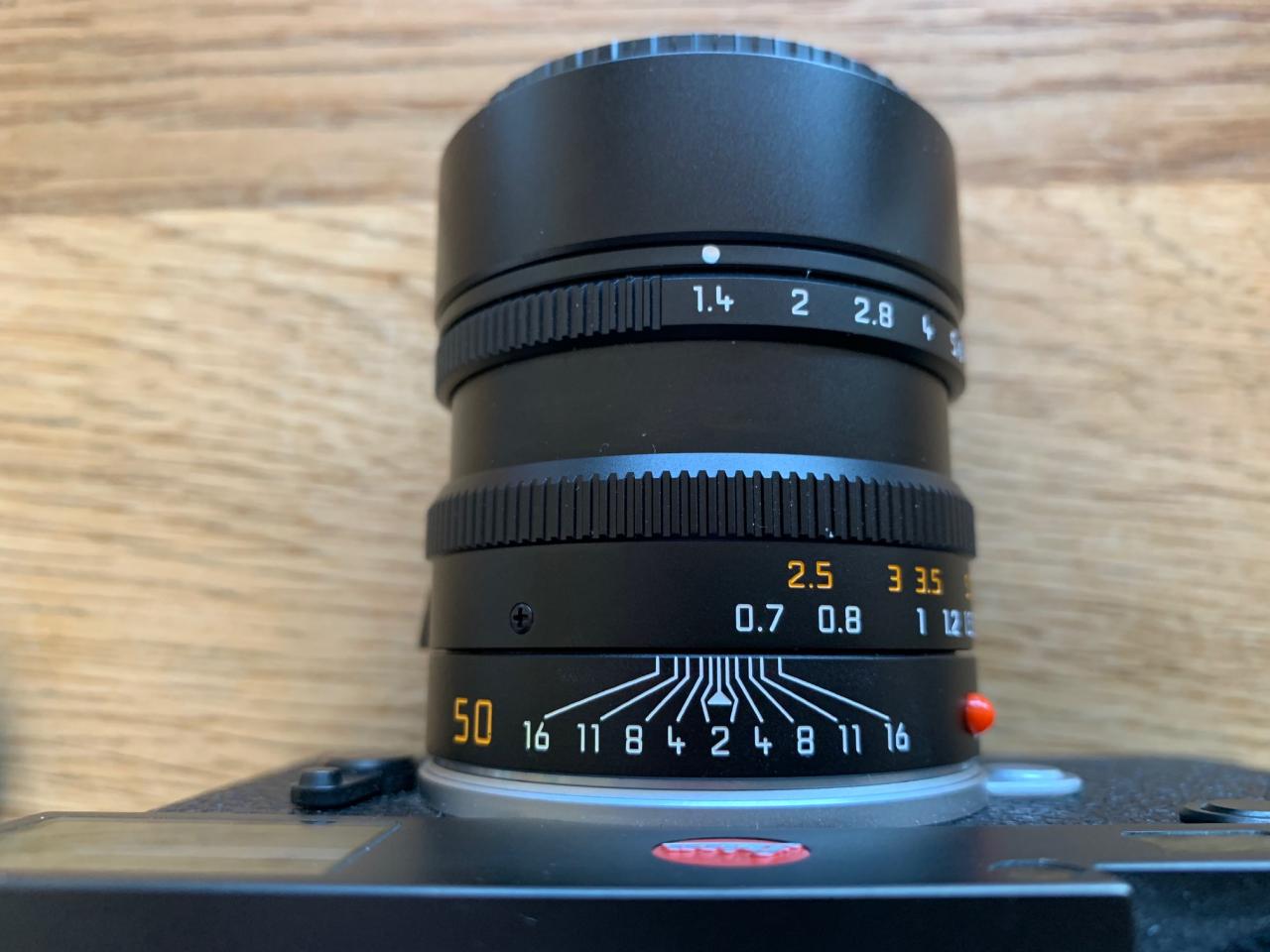 mir ist aufgefallen, dass sich an meinem 50er Summilux der Entfernungs-Einstellring etwas weiter nach links drehen lässt, so dass die 0.7m Anzeige zwischen Blende 4 und 8 und nicht mittig zum Stehen kommt (s. Foto). Beim Fotografieren verhält sich das Objektiv ganz normal. Liegt dies im Toleranzbereich oder ist hier etwas nicht in Ordnung?