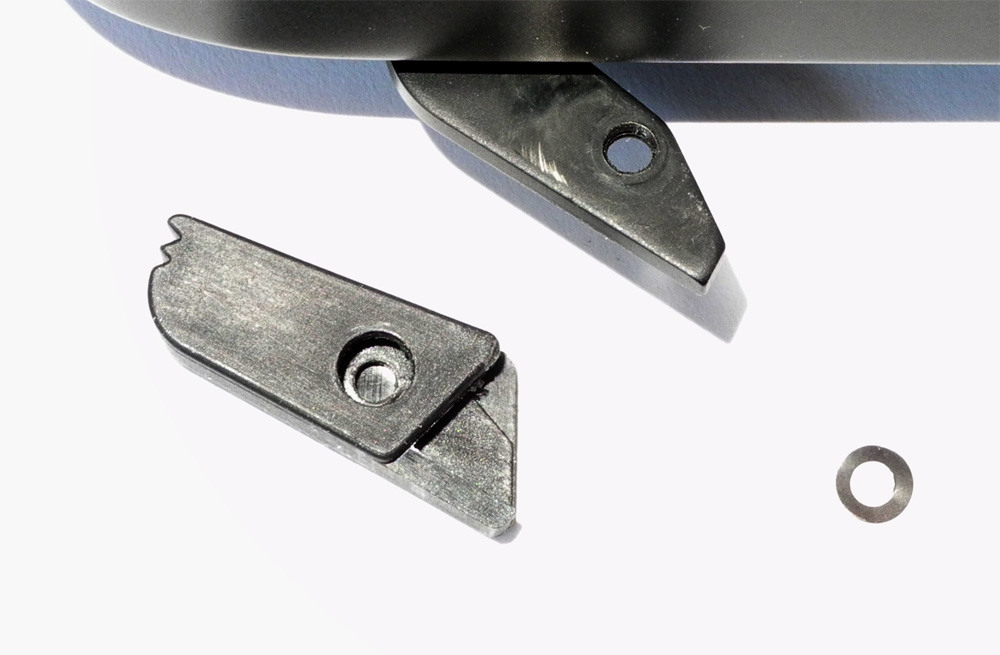 Ich füge mal zwei Fotos zur Erklärung bei. Ein Bild zeigt den Hebel mit den noch vorhandenen Teilen an der einen M6 (ohne Schraube) und das andere Foto den Normalzustand (mit Schraube).