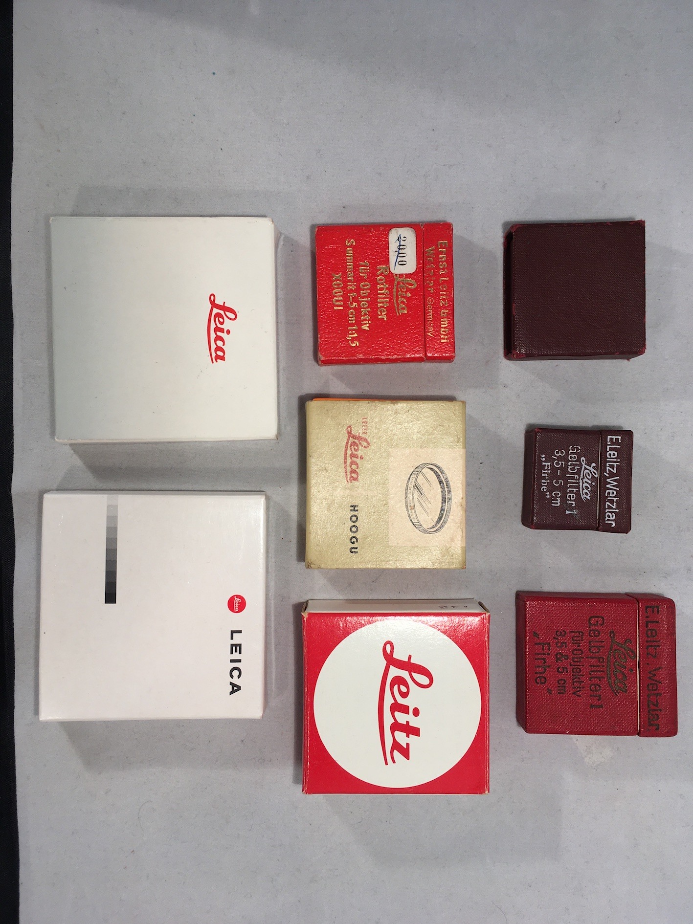 Leica packaging changed through the years. The box type can sometimes be a means to determine the age of a product. Specially for products without a serial number it can be difficult to determine its age. Apart from the box type I know that the logo's and trademarks of Leica and Leitz have changed over the years. In Leica collector's guide second edition by Dennis Laney you find these changes in logo on page 40. But so far I haven't found a source that tells me the period that the different packaging were used by Leitz.