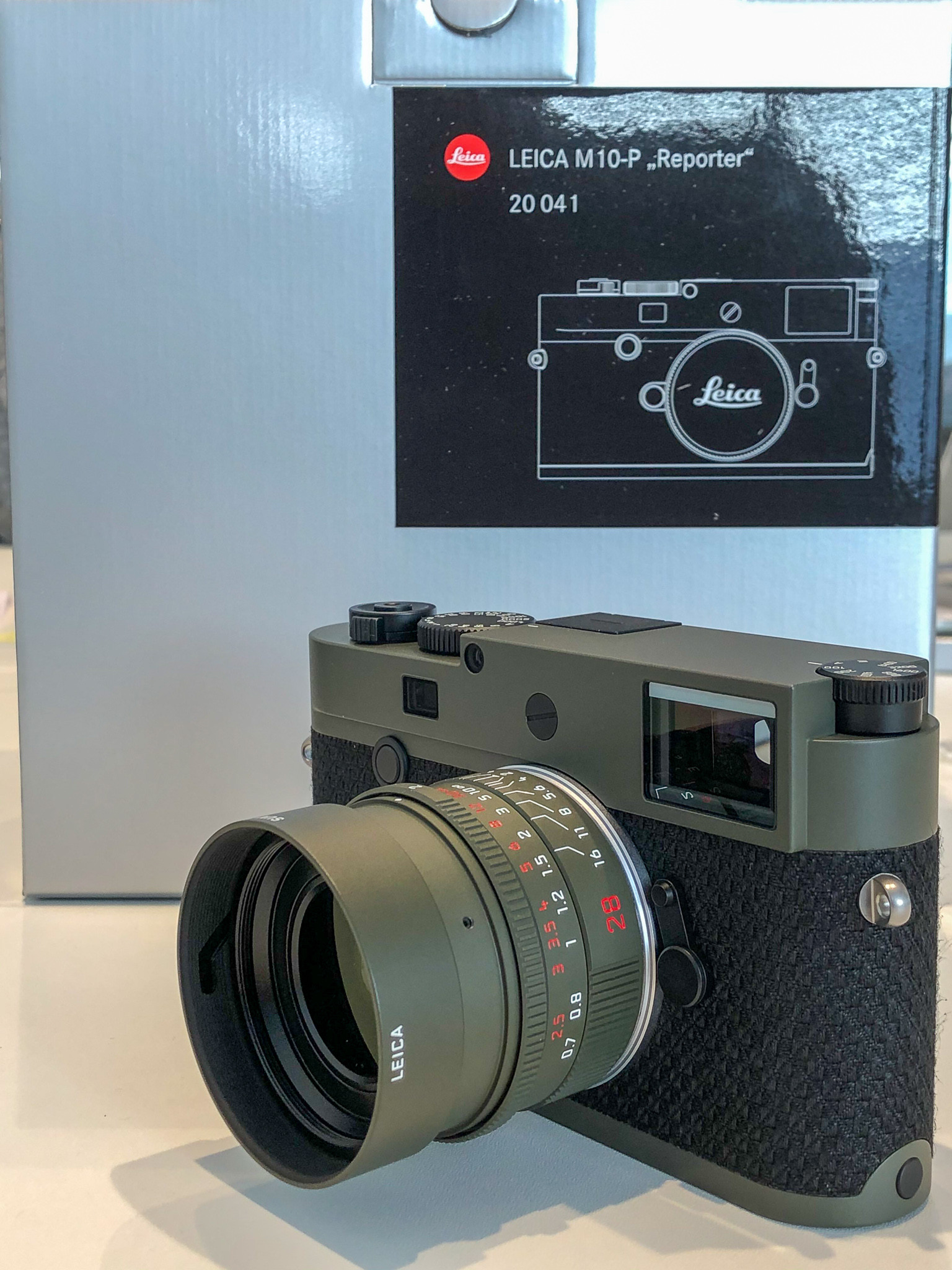 Here a picture of the M10-P Reporter in combination with a 28MM Safari-edition Summicron F2.0. The colors are not the same, but they match quite reasonably.