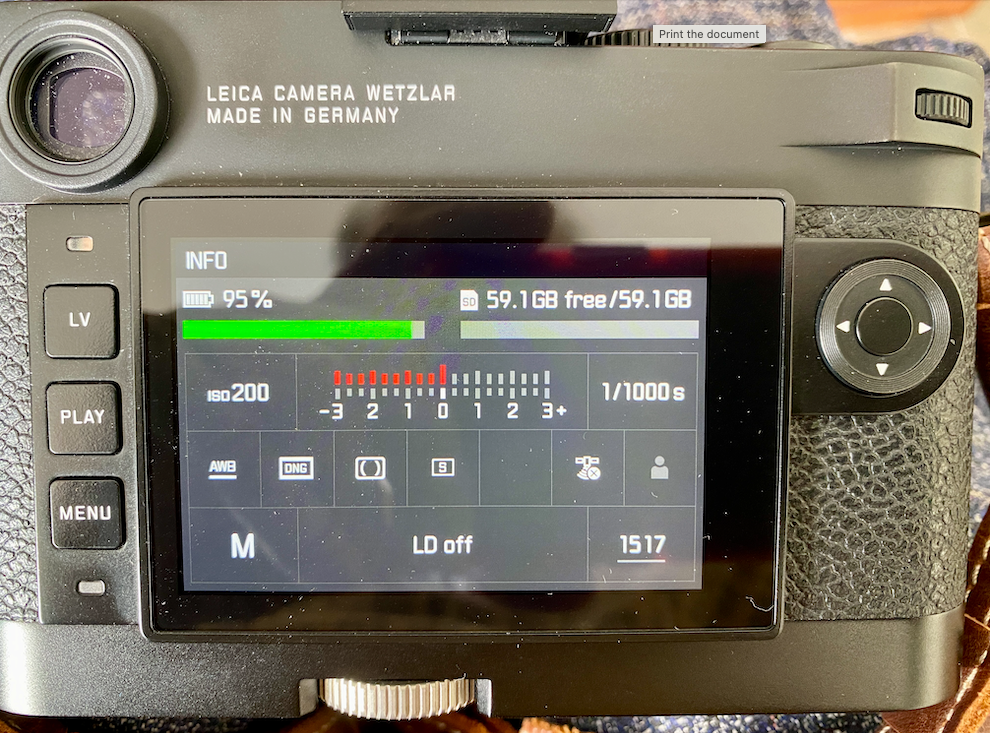 I've been asking for years how to tell if my Visoflex has connected to a satellite. Today, I gave up, and I called Leica Store, Miami, where Adam found out the answer. Turn on M10 with Visoflex 020 Select the Visoflex in the Menu, and change OFF to ON I waited a minute or two before doing the following.... On back of camera look for the 4-way selector switch, and press the center button You should see a screen like in my photo. The GPS icon (looks like a small satellite) will have a small "x" in a circle to the bottom right of the satellite icon. This means the GPS is "on", but is searching for a signal. As I'm writing this indoors, at my computer, I don't think it will connect, so I can't get a proper photo showing it isconnected. Eventually I should get it to appear long enough for me to get a photo of it with my iPhone, and add it to this discussion.