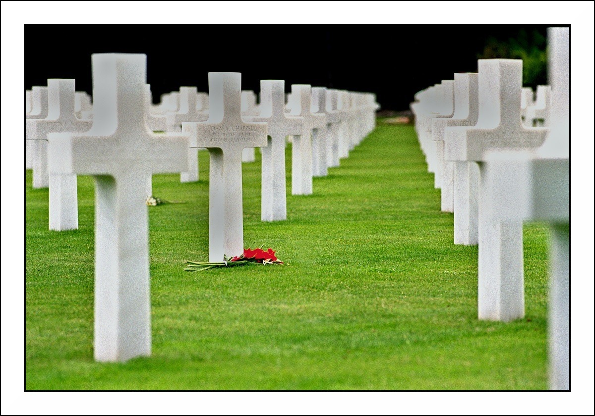 lovely. I'm actually giving talks at Normandy in a couple of months and am researching the dead. John A. Chappell, whose tombstone has flowers, is buried in Normandy, but the family also placed a marker in his hometown cemetery of Bernie, Missouri. There is a fair amount known about this modest man who died far too young: https://nhdsilentheroes.org/profiles/john-alden-chappell/