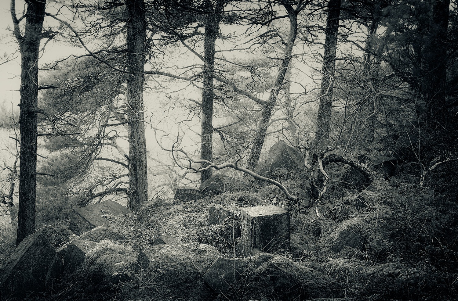 Altar to the lost gods who are hidden in the forest, Leica R9 with 35-70mm Vario Elmar, Adox HR-50. Please click for a better view.