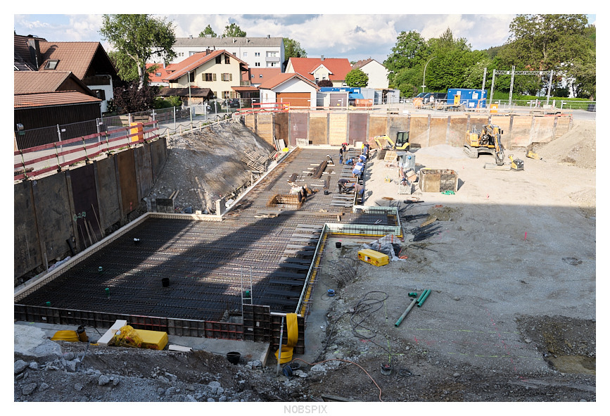 Na, da liegt ja schon das Eisen für die  Grundplatte, die jetzt betoniert wird. Was da zuvor eingebracht wurde. war nur ein Vorgeplänkel zur Stabilisierung des Untergrunds wohl.