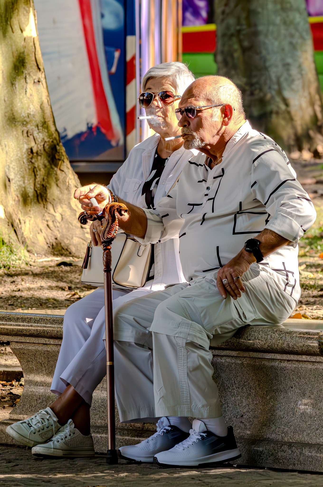 Old married couple trying hard to not get any older.