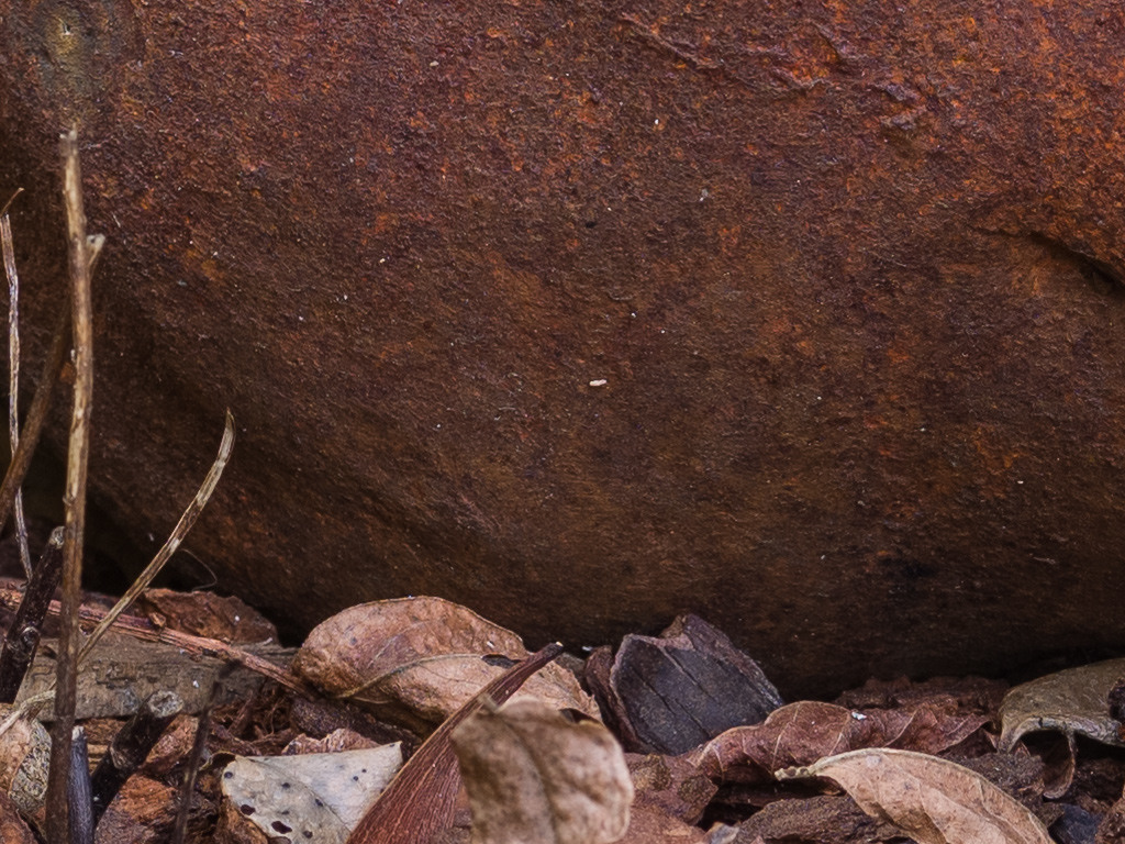 I processed the X1D images to my own taste and to the best of my ability. Raw files were imported into Lightroom. White balance was set manually. Small adjustments to exposure, contrast, highlights, shadows, and black point. A bit of local contrast through the clarity slider to make the details in the rust "pop" a bit. No adjustments to individual colors. Embedded color profile. Embedded lens profile for vignetting and distortion (though distortion is a non-issue on this type of shot). I took three separate exposures for each final image for focus stacking. The first image used the eye of the pig as the focus point. The second image used the bucket (slightly foreground) as the focus point. The third image used foreground leaves in the bottom left as the focus point. These three images were then merged in Photoshop to provide a depth off field that covered foreground to about the pig's shoulders (depending on your personal standards for "sharp"). I originally had a fourth shot for background leaves, but found that this made the wall in the back a little too distracting due to surface texture. I left that out. Sharpening was applied in Lightroom after the Photoshop focus stacking.