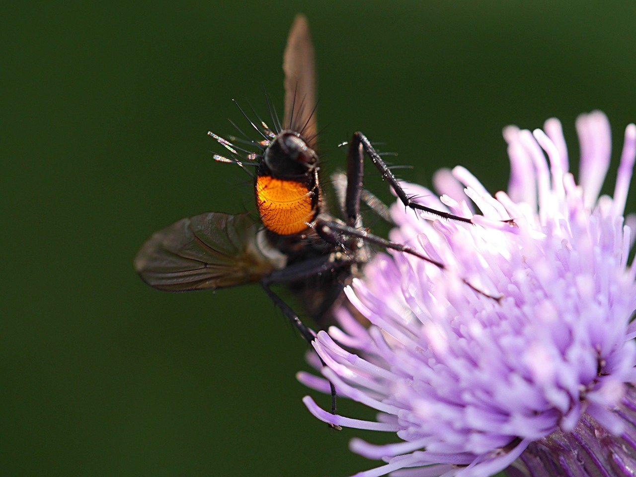 Bei dem Insekt, das ich leider nur von hinten erwischt habe und mir wegen der auffälligen Farbgebung des Hinterleibs durchaus ein Foto wert war, handelt es sich nach meinen Recherchen In der einschlägigen Fachliteratur offensichtlich um eine Igelfliege.