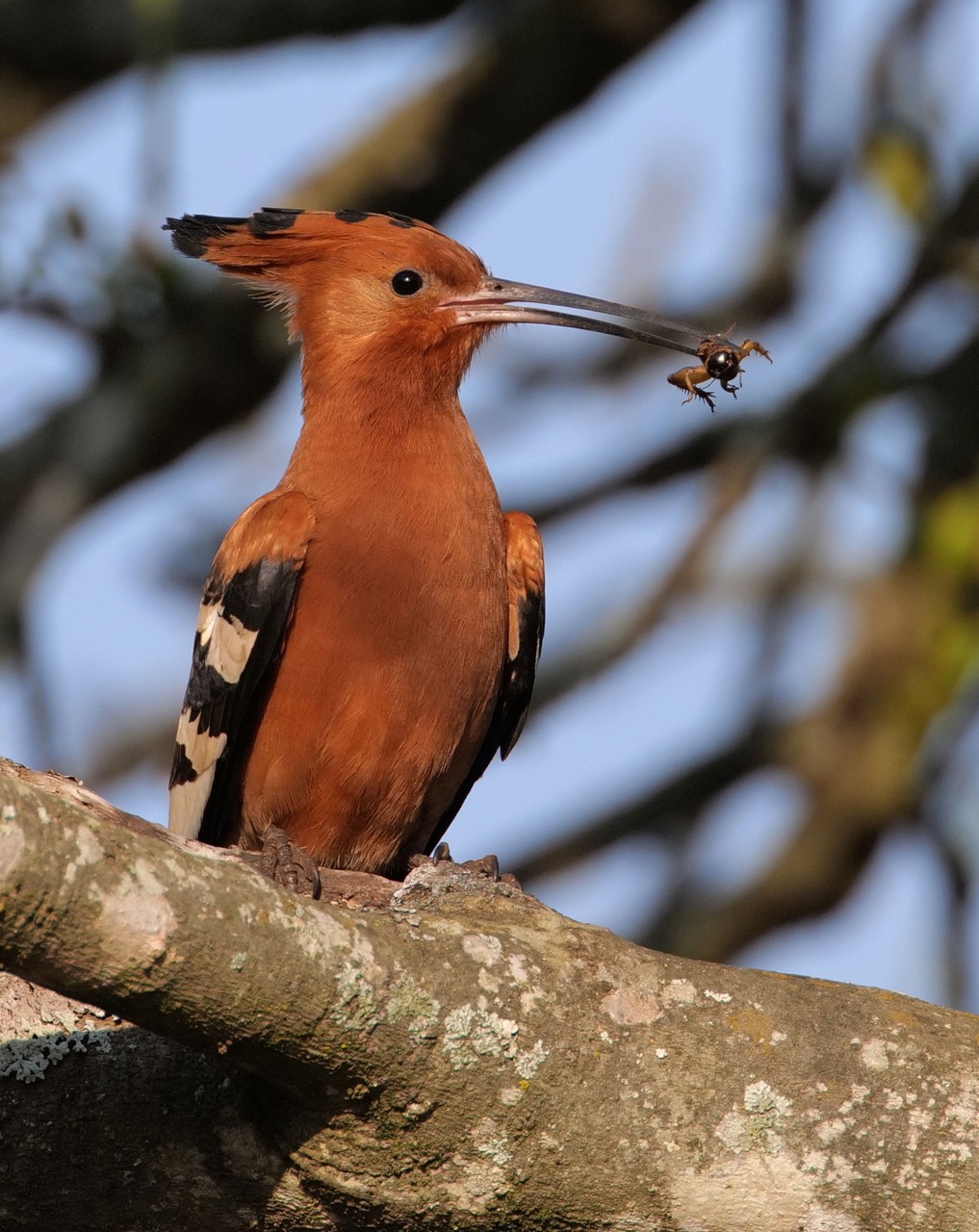 The Hoepoe will first beat its prey against the ground or a stone to kill it, and then remove wings and legs which can't be digested, and eat only the juicy parts.