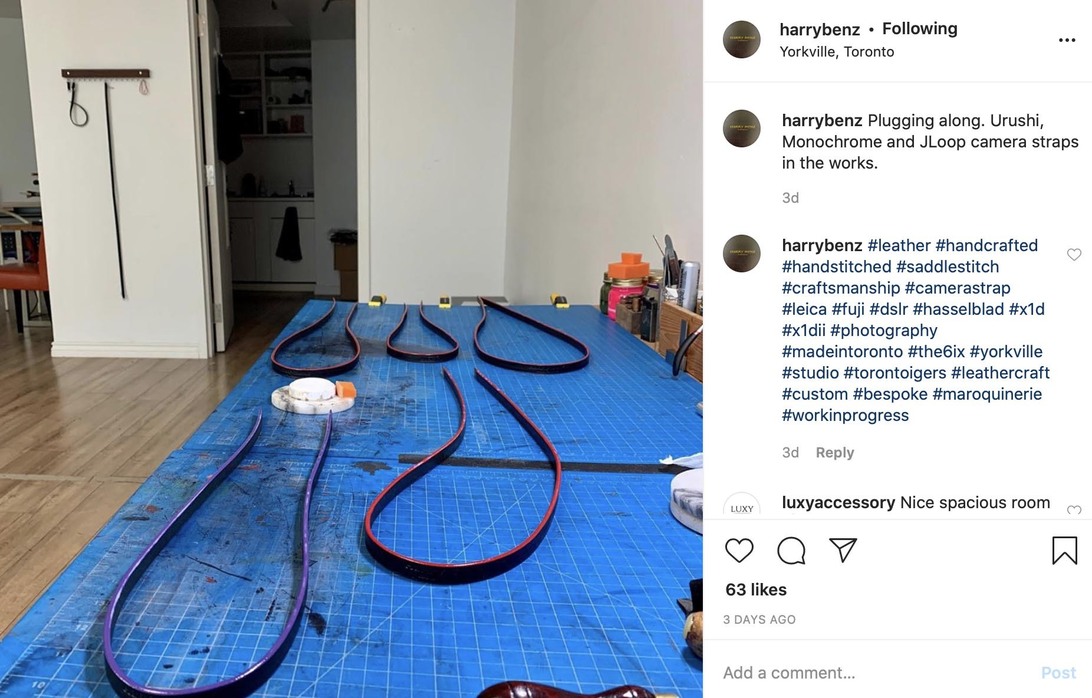 LeicaS2 Posted July 18, 2020 Share #49 Posted July 18, 2020 I discovered via Instagram that Harry Benz is back at work. He moved his equipment to his home in case there is another lock down. I posted a picture of work in progress and I thought I saw my J-loop on his work table. Then yesterday I got a shipping notice and saw my J-loop in another instagram photo. The j-Loop is an over the shoulder strap that hooks onto just one of the camera lugs with a release clip. When I arrives will report if I ordered the right length, as lengths are custom made. Thank you Harry! Welcome, dear visitor! As registered member you'd see an image here… Simply register for free here – We are always happy to welcome new members! Link to post Share on other sites Simply register for free here – We are always happy to welcome new members! ' data-webShareUrl='https://www.l-camera-forum.com/topic/306786-highly-technical-strap-questions/?do=findComment&comment=4011389'>More sharing options...