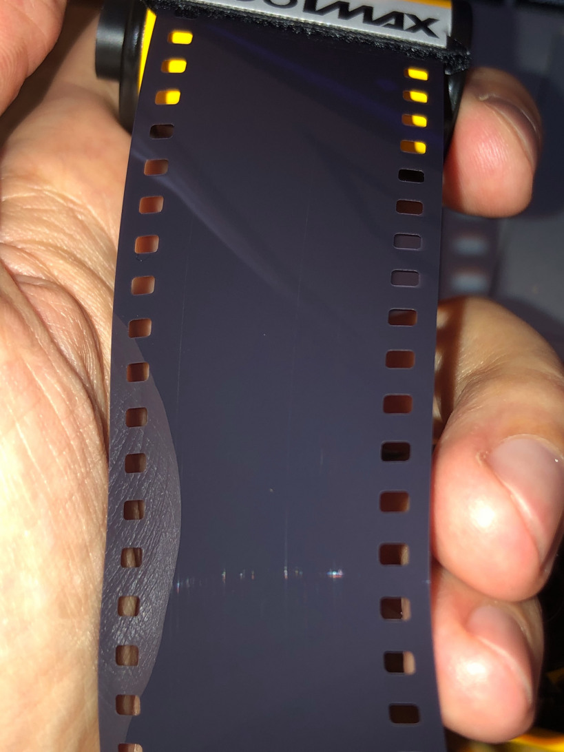 And here's the beauty shot, going in for my 3rd test with a clean roll. I advanced 5 frames and rewound, then did that again with this film, to make sure extra marks are there. I succeeded, if one can call this a success.