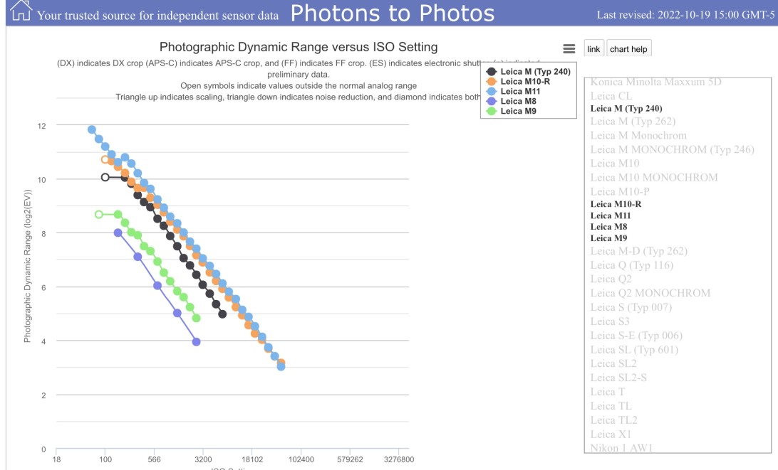 Chimichurri Posted November 4, 2022 Share #17 Posted November 4, 2022 (edited) 17 minutes ago, Adam Bonn said: Yes. This is called dual gain technology. Links in my post above Welcome, dear visitor! As registered member you'd see an image here… Simply register for free here – We are always happy to welcome new members! Fuji (amongst others) were doing this 6 years ago (edit, sorry wrong chat 🙄) What is relevant to this conversation is that the M10 goes up linearly and the M10R dips at ISO400 giving the camera basically the same noise as the M10. That’s all there is to it. The point is the M10R was the first Leica M to have a dual gain sensor. I said ISO invariant and I deleted it because I’m confusing 2 different things. And yes, changing the exposure in post or ISO on the dial pretty much gives you the same result on both. Agreed. Edited November 4, 2022 by Chimichurri 1 Link to post Share on other sites More sharing options...