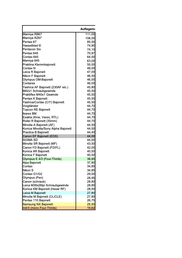 01af Posted December 22, 2022 Share #23 Posted December 22, 2022 Am 18.12.2022 um 12:40 schrieb gauss: Ich meine, die modernste Meßsucherkamera war die Contax G2 ... Die modernste – ja. Aber nicht die beste. Der Zoom-Sucher war mies, die Objektivauswahl klein, der Autofokus lahm und die manuelle Fokussierung praktisch unbrauchbar. . Am 18.12.2022 um 12:40 schrieb gauss: ... bei der Hexar paßte das Auflagemaß nicht ... Keine Sorge. Das paßt schon. . Am 18.12.2022 um 13:02 schrieb UliWer: War das nicht eine Legende, die von Seiten der Leica-Anhänger lanciert wurde? Eine Legende, ja. Aber lanciert wurde sie von Konica selber, weil die das Auflagemaß anders definiert haben (und nur deshalb auf einen anderen Zahlenwert kommen) als Leica. Doch wenn man das Auflagemaß bei Leica M und Konica Hexar RF auf die gleiche Weise mißt, so kommt auch das gleiche Maß heraus. Problematisch könnten allenfalls die bei Konica etwas größeren Toleranzen sein. Irgendwo muß der Preis ja herkommen ... 2 Link to post Share on other sites More sharing options...