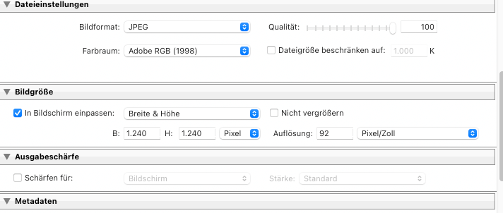 drpagr Posted March 7, 2023 Share #61 Posted March 7, 2023 (edited) Advertisement (gone after registration) vor 1 Stunde schrieb UliWer: Ja, das kann man. Wenn Du auf "Datei" - Exportieren"klickst öffnet sich ein neues Menü. Dort findet man etwas weiter unten den Bereich "Bildgröße", wo Du die gewünschten Werte einstellen kannst. Das Forum lässt 1240px (auf der langen Seite) zu, also kannst Du die ausnutzen. So sieht das auf deinem Lightroom Bildschirm aus: Welcome, dear visitor! As registered member you'd see an image here… Simply register for free here – We are always happy to welcome new members! Nochmals vielen Dank für Deine Geduld. Und dank Deiner Erklärung hat es gleich beim ersten Mal funktioniert. Ich habe viel gelernt! Insgesamt verhalten sich meine Elmare in der Qualität entsprechend der Baujahre, je jünger, desto besser oder zumindest gleich gut. Leider scheinen die großen Bildausschnitte mit 1.240 Pixel Kantenlänge etwas "diffus" zu sein. Auf dem Rechner, auf dem ich das Lightroom-Programm habe, ist alles viel deutlicher zu sehen. Insbesondere bei den Summiluxaufnahmen sieht man bei dieser Vergrößerung die Pixel deutlich. Aber man muss wohl Abstriche machen bei der Übertragung und Darstellung hier im Forum. Auf der anderen Seite kann man die Unterschiede auch hier im Forum schon sehen. Zum Glück für mich sind in der Mitte alle meine Nachkriegs-Elmare (außer dem Elmar von 1952) auf einem hohen Niveau. Nicht ganz so toll sind z.T. die Randbereiche. Da muss ich wohl im Fall der maximalen Qualität mehr abblenden oder die Ränder abschneiden, wenn es das Motiv erlaubt. Edited March 7, 2023 by drpagr Link to post Share on other sites More sharing options...