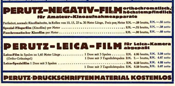 March 1927 is the first Perutz pricelist in my collection that mentions the Spezial-Fliegerfilm