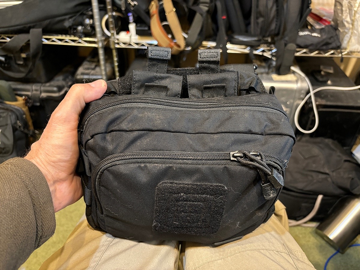 OK - here's one that I bet nobody has used or even thought of. It's from 511 - the tactical clothing company. It has one side of velcro inside - so I used the peel and stick from Home Depot for the other side so I could put some dividers in. This little bag holds my M11, visoflex, 135mm, 75mm, 4omm VM, 28mm Emarit and an extra battery. Front pouch is pretty good sized as well for whatever else - I usually have a couple of filters and a lens brush.