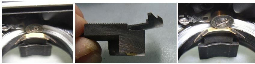 recently I had on my table  a chromed Summarex with exactely the same problem - while on IIIc it was on the edge (rangefinder was working) on my M3 it did not couple anymore (left photo). Reason why it was done  is unknown to me, could have been corrected. While bending back one need to be carefull not to break it, it is brass but rather thin